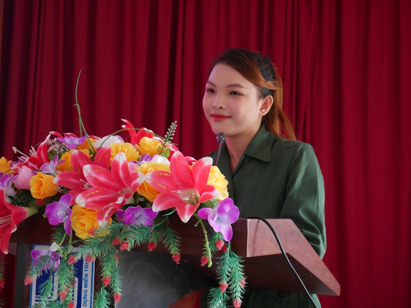 Sinh viên Nguyễn Thị Thu Hiền (lớp D19KT) đại diện sinh viên tham gia lớp học phát biểu