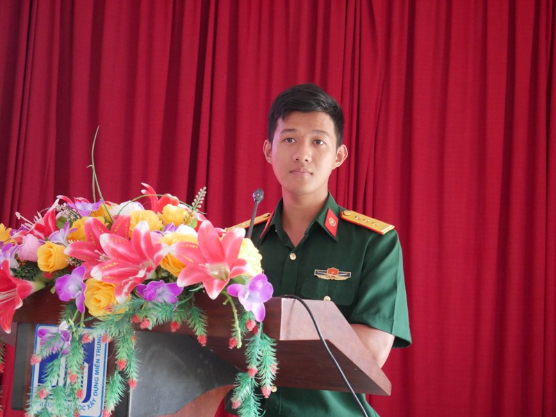 Thầy Thái Văn Thành, GV Khoa Quân sự chung - Trường Sĩ quan Thông tin, đại diện cho các giảng viên trực tiếp tham gia giảng dạy phát biểu tại buổi khai mạc