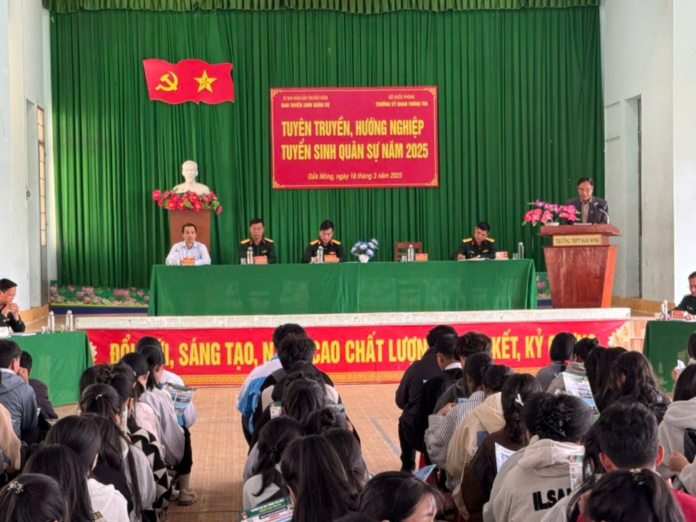 Nhằm tiếp tục nâng cao chất lượng công tác Tuyển sinh năm 2025, trong hai ngày 17/3 và 18/3/2025, Trường Sĩ quan Thông tin tổ chức tuyên truyền, hướng nghiệp tuyển sinh quân sự năm 2025 tại tỉnh Đăk Nông.