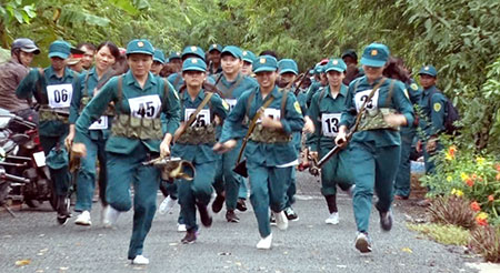 5. Trang phục và vũ khi trang bị+ Trang phục: Quần áo dã ngoại, bảo hộ lao động hoặc thể thao, đi giầy hoặc chân đất và đeo số áo bốc thăm trước ngực, sau lưng. + Vũ khí trang bị: Súng tiểu liên AK hoặc CKC và đeo bao xe trước ngực. 6. Xác định thành tích xếp hạngThi vô địch cá nhân và đồng đội được xác định theo điều lệ cuộc thi: |