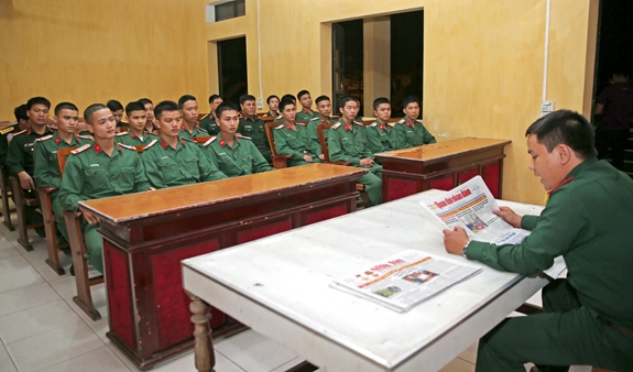 i) Đọc báo, nghe tin- Hàng ngày trước giờ học tập, sinh hoạt tối 15 phút quân nhân đều được đọc báo, nghe tin. Việc đọc báo, nghe tin tập trung chỉ tổ chức trong các ngày sinh hoạt còn các ngày khác cá nhân tự nghiên cứu. - Đọc báo, nghe tin tập trung tổ chức ở cấp trung đội, đại đội và tương đương. Đến giờ qui định mọi quân nhân phải có mặt ở vị trí quy định giữ trật tự để nghe. - Người được phân công phụ trách đọc báo phải chuẩn bị trước để đọc lưu loát dể nghe. Người phụ trách hệ thống truyền tin, trước giờ truyền tin phải kiểm tra máy móc bảo đảm nghe, xem tốt. |