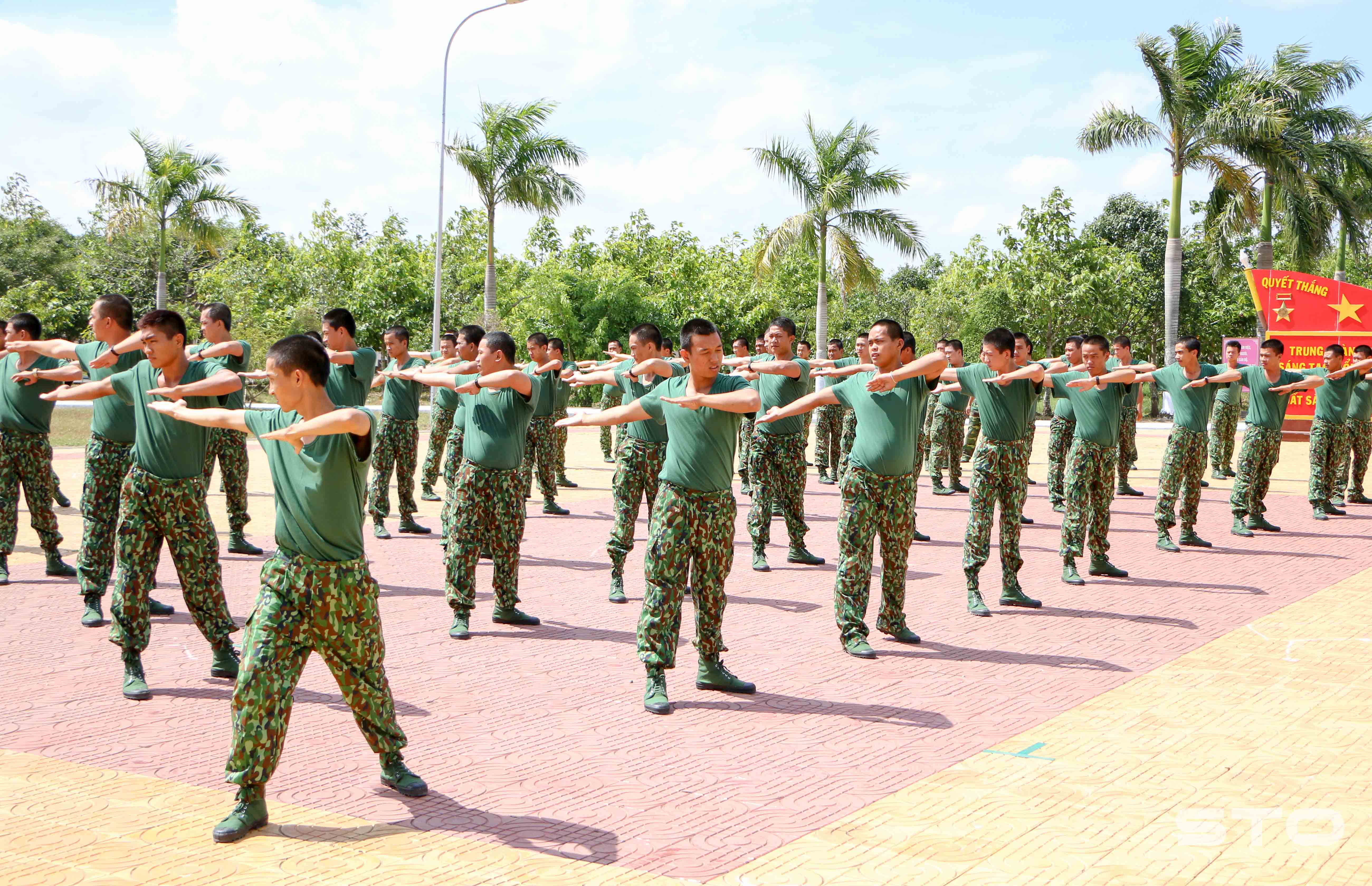 a) Treo Quốc kỳCác đơn vị từ cấp trung đoàn và tương đương trở lên, khi đóng quân trong cùng một doanh trại phải tổ chức treo Quốc kỳ hàng ngày ở một vị trí trang trọng nhất. Các đại đội, tiểu đoàn và tương đương khi đóng quân độc lập thì tổ chức treo Quốc kỳ trên sân chào cờ, duyệt đội ngũ của đơn vị. Thời gian treo Quốc kỳ lúc 06 giờ, thời gian hạ Quốc kỳ lúc 18 giờ hàng ngày. |