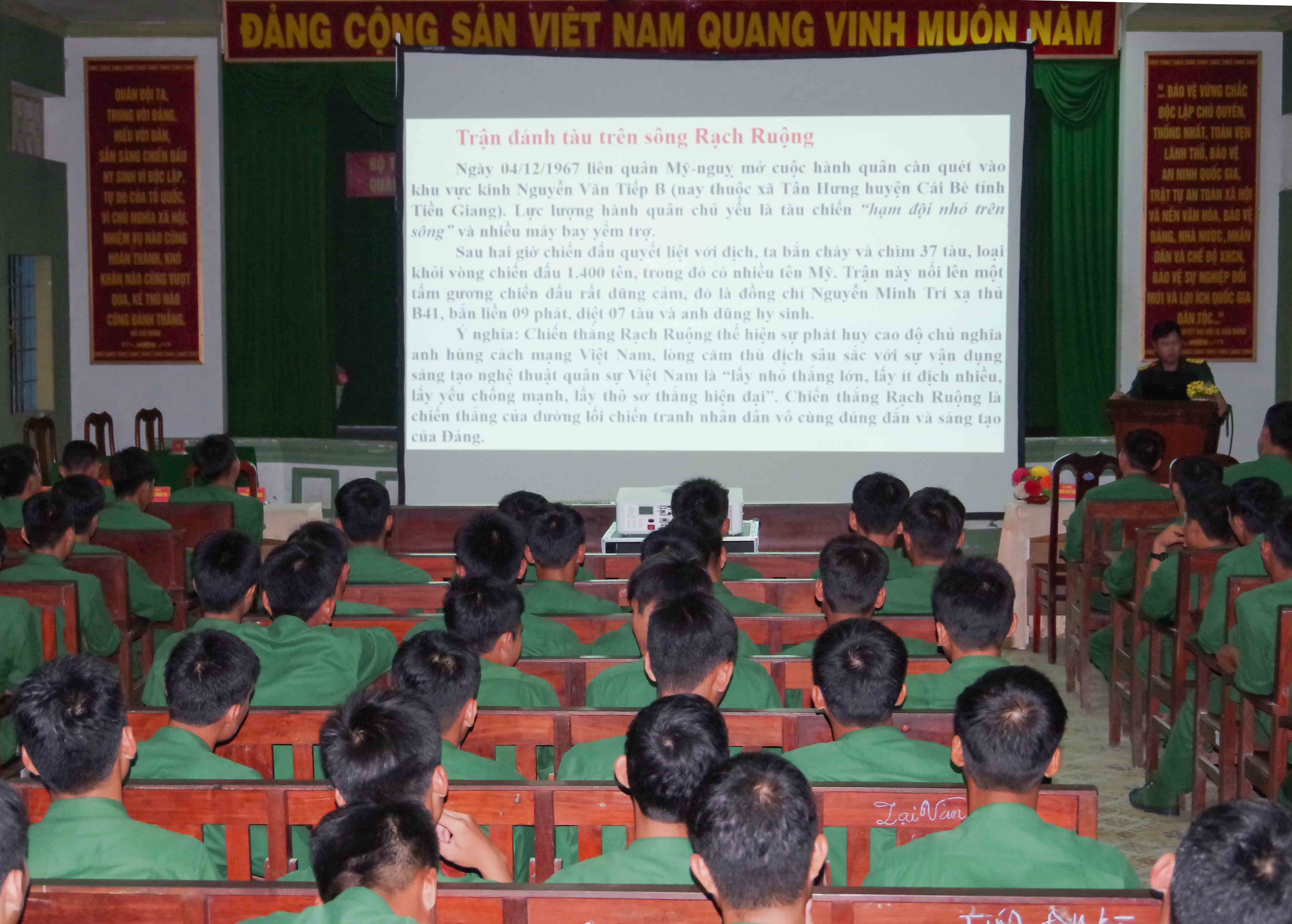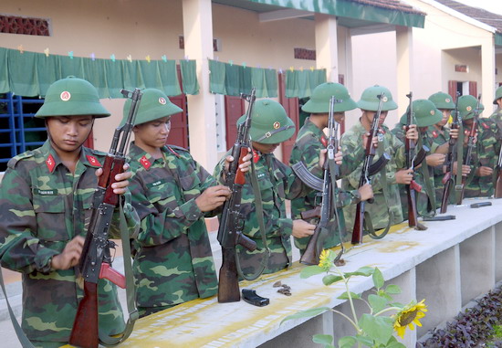 e) Học tập- Học tập trong hội trường: Người phụ trách hoặc trực ban lớp học phải kiểm tra quân số, trang phục, chỉ huy bộ đội vào vị trí, hô “Nghiêm” và báo cáo giáo viên. Nếu đơn vị có mang theo vũ khí phải tổ chức khám súng trước và quy định nơi giá (đặt) súng trước khi vào hội trường. Quân nhân ngồi trong hội trường phải đúng vị trí quy định, tập trung tư tưởng theo di nội dung học tập. Khi ra hoặc vào lớp phải đứng nghiêm báo cáo xin phép giáo viên. Được phép mới ra hoặc vào lớp. Sau mỗi tiết hoặc giờ học tập được nghỉ từ 5 đến 10 phút. Hết giờ nghỉ nhanh chóng vào lớp, tiếp tục nghe giảng, giáo viên phải chấp hành đúng thời gian. Nếu giảng quá giờ quy định phải báo cho người phụ trch lớp học và người học biết; Hết giờ học, người phụ trách lớp hô “Nghiêm”, báo cáo giáo viên hoặc chỉ huy cho xuống lớp, sau đó chỉ huy bộ đội ra về. - Học tập ngoài thao trường Đi và về phải thành đội ngũ. Thời gian đi và về không tính vào thời gian học tập. Nếu một lần đi (về) trên 1 giờ được tính một nửa vào thời gian học tập. Trước khi học tập, người phụ trách hoặc trực ban lớp học phải tập hợp bộ đội, kiểm tra quân số, trang phục, vũ khí, học cụ, khám súng, sau đó báo cáo giáo viên. Phải chấp hành kỷ luật thao trường, tập luyện nơi gần địch phải có kế hoạch sẵn sàng chiến đấu, súng đạn, trang bị chưa dùng trong luyện tập phải có người canh gác. Hết giờ luyện tập người phụ trách hoặc trực ban lớp phải tập hợp bộ đội, khám súng, kiểm tra quân số, vũ khí, học cụ và trang bị khác, chỉnh đốn hàng ngũ, báo cáo giáo viên cho bộ đội nghỉ, sau đó chỉ huy bộ đội về doanh trại hoặc nghỉ tại thao trường. Trường hợp có cấp trên của giáo viên ở đó thì giáo viên phải báo cáo cấp trên trước khi lên, xuống lớp. |