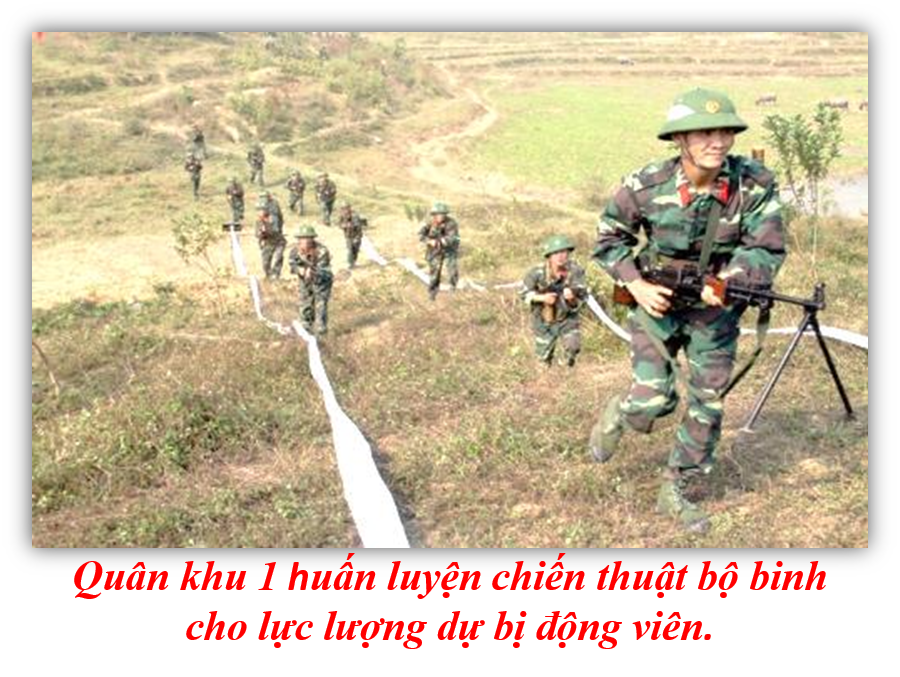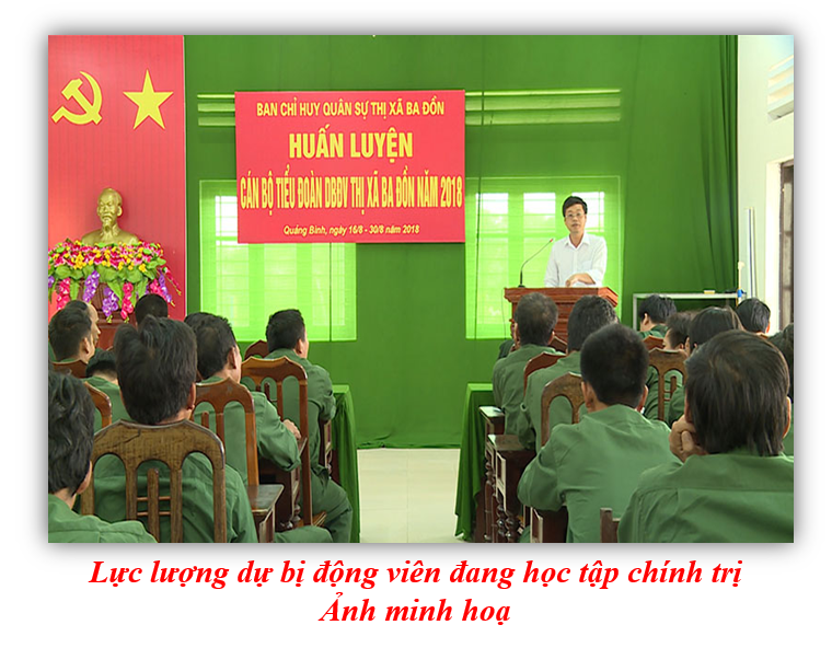 | Biện pháp tạo nguồn đối với sĩ quan dự bị, cơ quan quân sự địa phương quản lí chắc số sĩ quan phục viên, xuất ngũ. Hằng năm, lựa chọn những đồng chí tuổi đời còn trẻ, có sức khoẻ, phẩm chất năng lực tốt đưa họ vào tạo nguồn. Số cán bộ chuyên môn kĩ thuật của nền kinh tế quốc dân (y tế, bưu chính viễn thông, giao thông vận tải,...) có thể phục vụ lợi ích quốc phòng khi có chiến tranh. Hằng năm, tuyển chọn số hạ sĩ quan có phẩm chất năng lực tốt trước khi xuất ngũ cho đi huấn luyện, đào tạo họ thành sĩ quan dự bị. | ![]() |