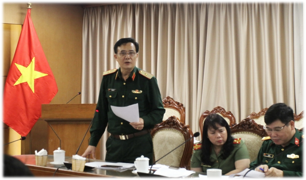 Thiếu tướng Phạm Đức Tú, Vụ trưởng Vụ Giáo dục Quốc phòng An ninh phát biểu tại cuộc họp |